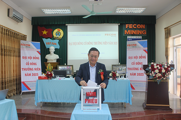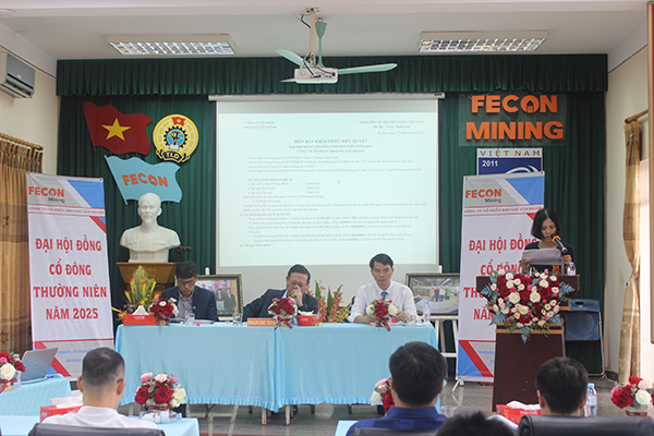 Đại hội đồng cổ đông thường niên năm 2025 của Công ty CP khoáng sản FECON thực hiện đúng chương trình nghị sự đề ra và đã thành công tốt đẹp. Đại hội đã diễn ra trong không khí sôi nổi, một số ý kiến góp ý, trao đổi thẳng thắn và đã cùng nhau thống nhất tất cả các nội dung quan trọng trong chiến lược định hướng và phát triển của FCM trong năm 2025.
