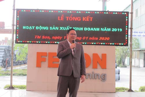 ông Hà Thế Phương - Chủ tịch HĐQT đại diện cho ban quản trị có những chia sẻ thâm tình trước những cố gắng của tập thể nhà máy sau khi nghe giám đốc điểm lại bức tranh của nhà máy trong năm 2019, chỉ ít dòng chia sẻ nhưng đã đủ để CBCNV hiểu và thấm nhuần tư tưởng mà ban quản trị mong muốn, đầu tiên phải kể đến là trong thời kỳ mới này việc áp dụng các kỹ thuật mới áp dụng vào quản lý sản xuất, quản trị công ty đã trở nên cấp thiết, vì vậy việc áp dụng hệ thống quản trị ERP là điều bắt buộc phải hướng tới, năm 2019 là năm đầu tiên FCM hội nhập với tập đoàn Phan Vũ, công ty mẹ với tiềm năng lớn về vốn và kinh nghiệm quản trị đã từng bước đào tạo đội ngủ lãnh đạo của FCM vì vậy các cán bộ quản lý phải chú trọng học hỏi, áp dụng tốt các hệ thống quản trị mới, các công nghệ mới để đưa nhà máy trong tương lại phát triển vươn xa ra các thị trường mới trong và ngoài nước.